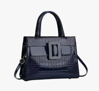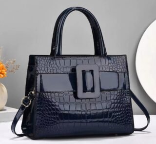 Luxury Glossy Croc-Texture PU Leather Handbag with Shoulder Strap for Women