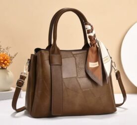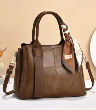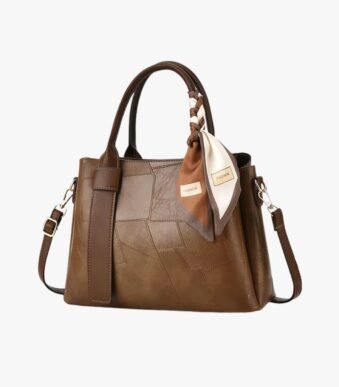 Artisan Patchwork Tote with Silk Scarf Accent – Versatile Shoulder Bag