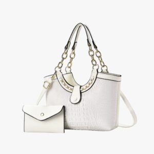 Chic White Croc-Embossed Handbag Set