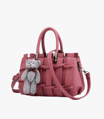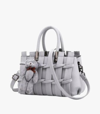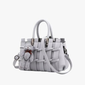Charming Weave Detail Shoulder Bag with Teddy Charm – Stylish Crossbody Tote