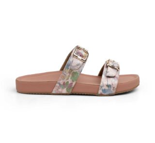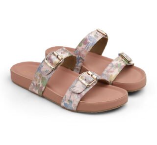 Zelion Women’s Dual-Buckle Printed Comfort Slides – Black Floral & Multi Color Floral