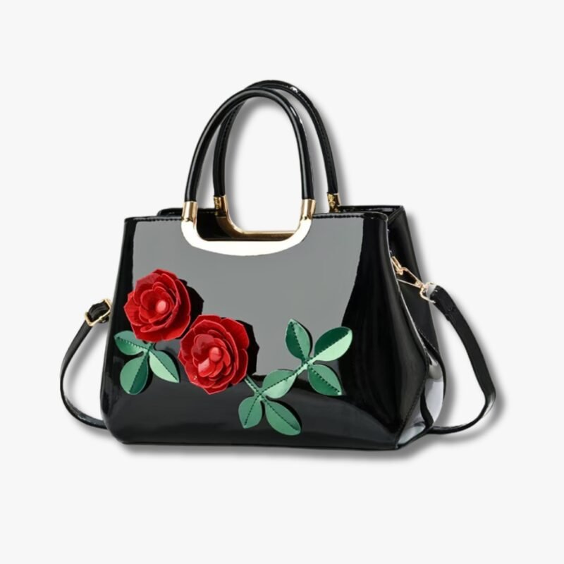 Elegant Glossy PU Leather Handbag with 3D Rose Flower Design