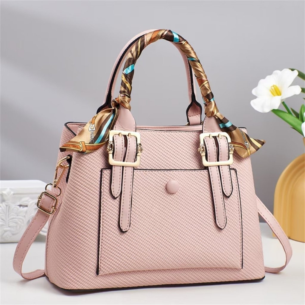 Add a touch of sophistication to your wardrobe with this elegant PU leather handbag, designed with chic double buckle accents and a decorative scarf handle wrap. Perfectly blending fashion and functionality, this handbag offers spacious compartments and a versatile design that can be carried as a handbag, shoulder bag, or crossbody. Whether for work, shopping, or casual outings, this handbag is a timeless accessory that complements any outfit.