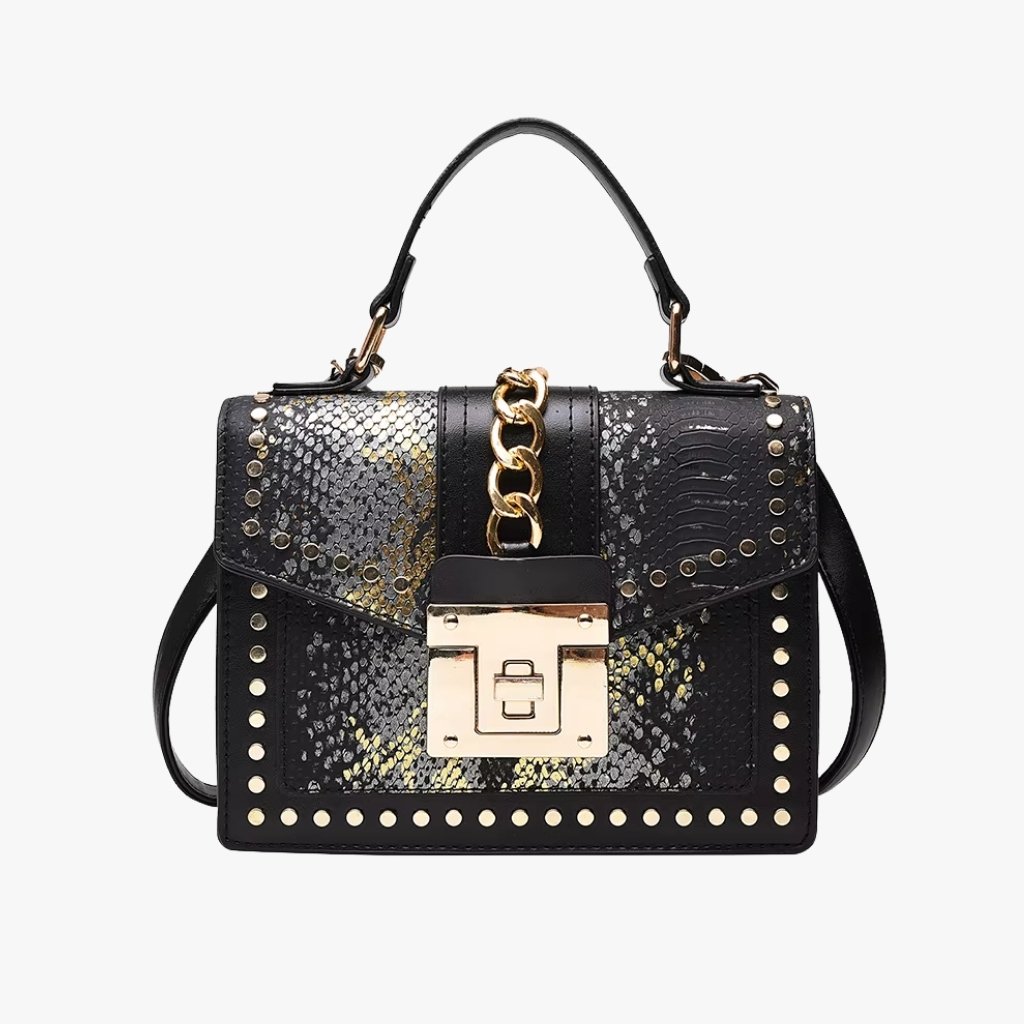 Be the first to review “The Bold Studded Snake-Print Crossbody” Cancel reply