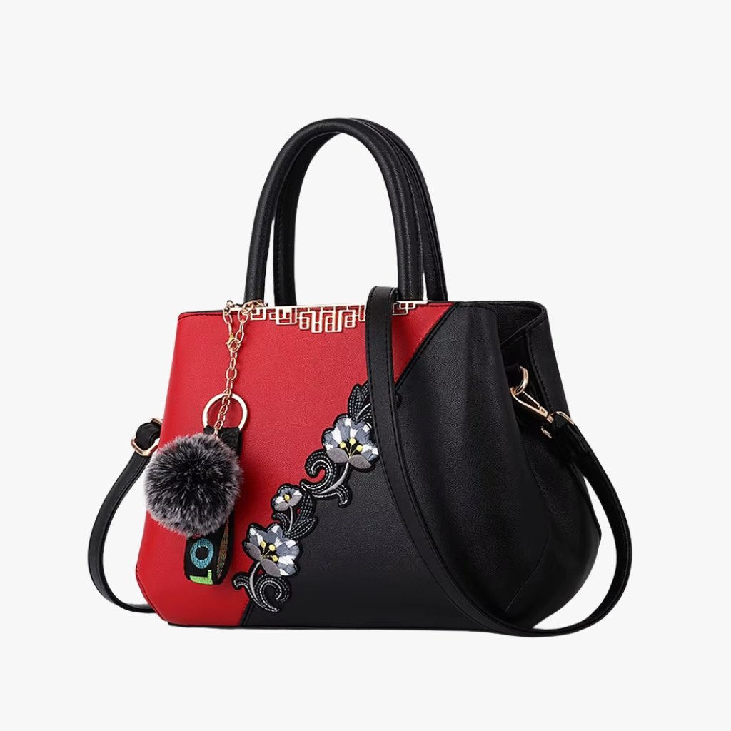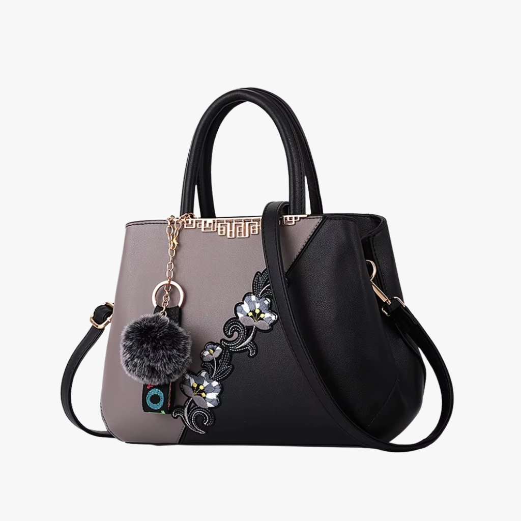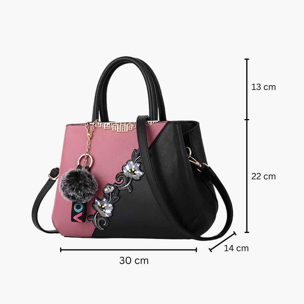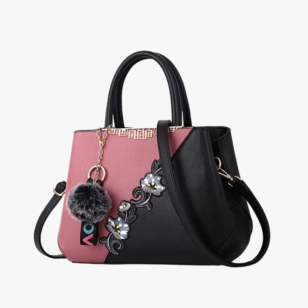 The Floral Embellishment Satchel – Top-Handle Tote with Pom Charm