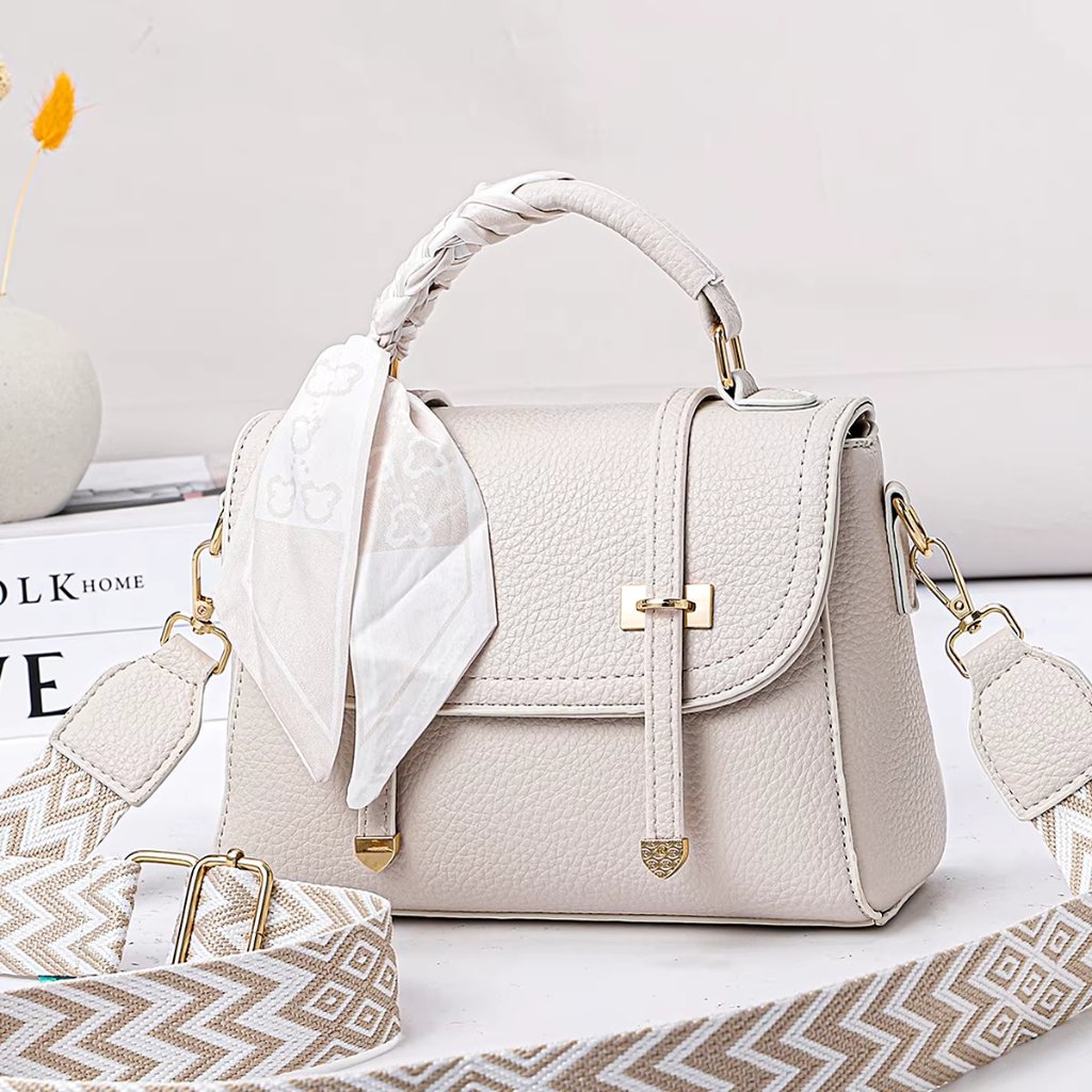 Elegant PU Leather Handbag with Scarf Decoration – Women’s Tote & Shoulder Bag
