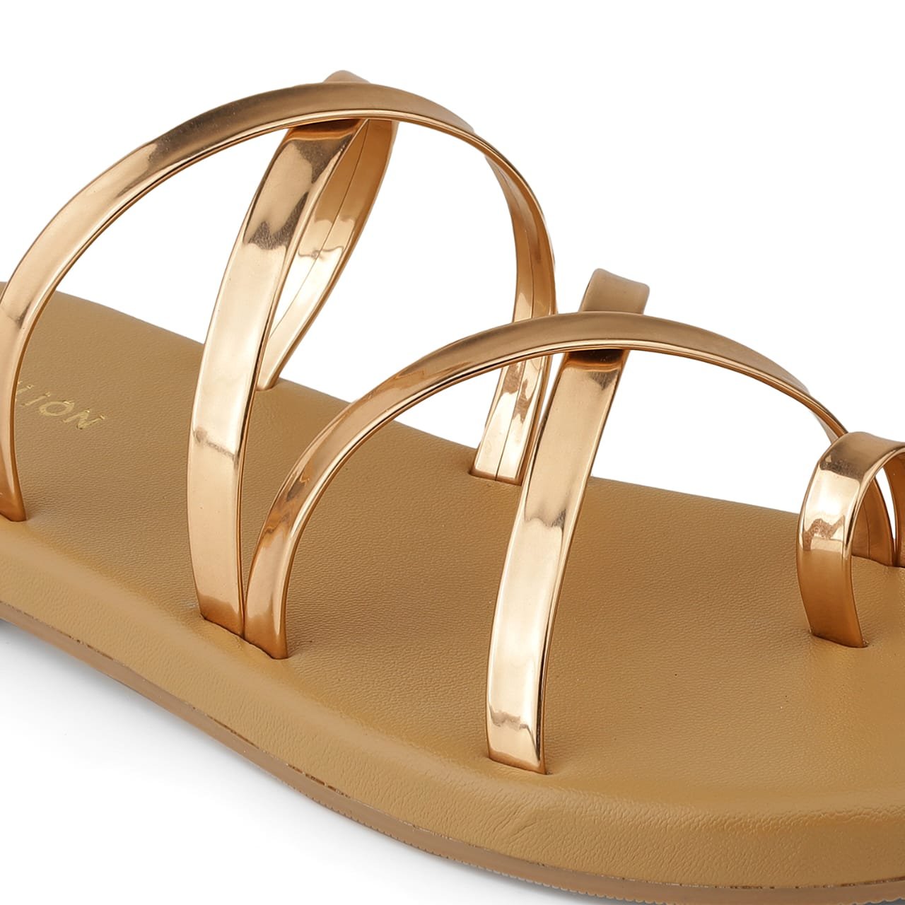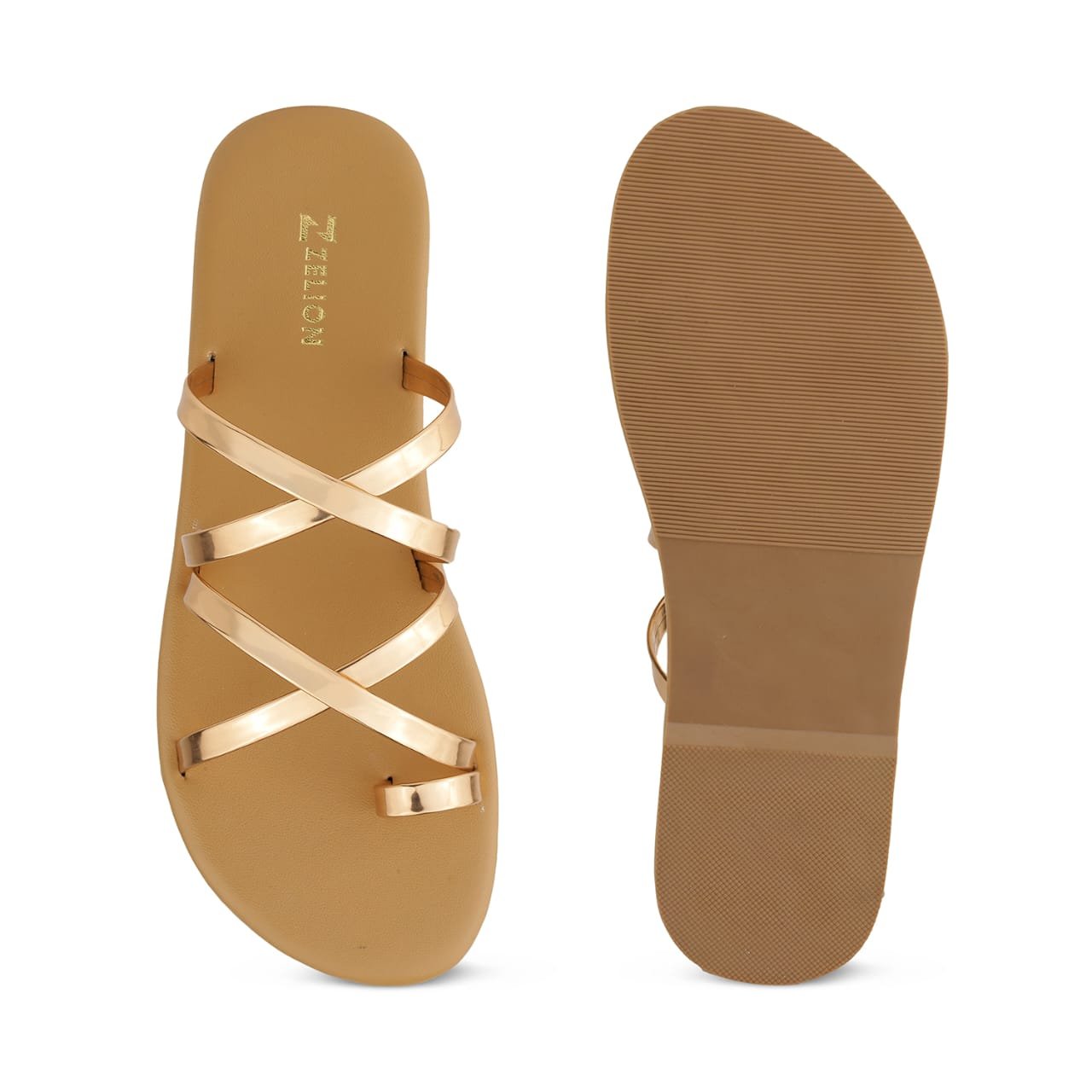 Zelion | Classic Toe-Ring Flat Sandals with Gold Accents