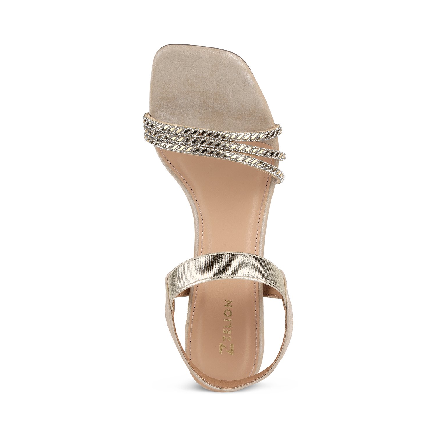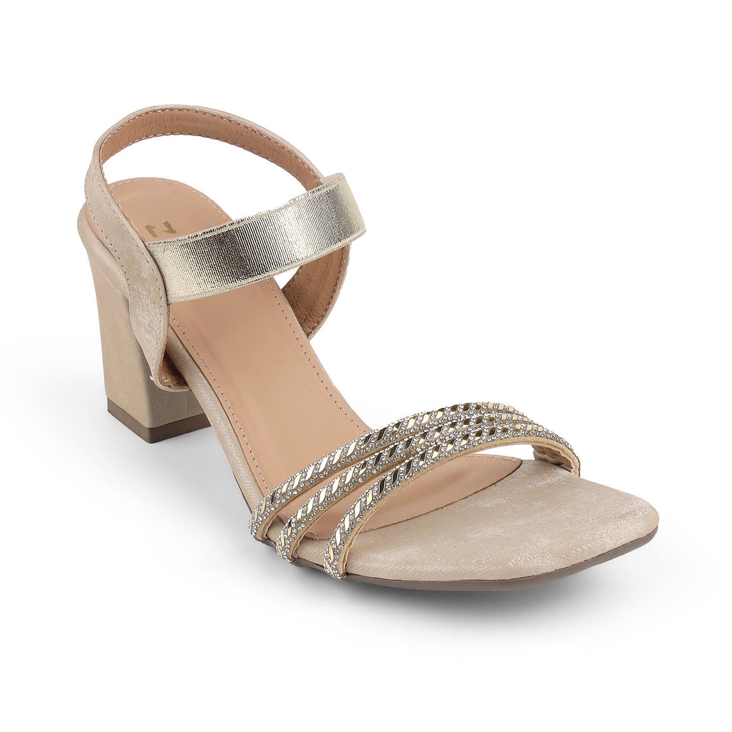 Zelion | Women’s Golden Embroidered Ethnic Block Heel Slip-On Sandal