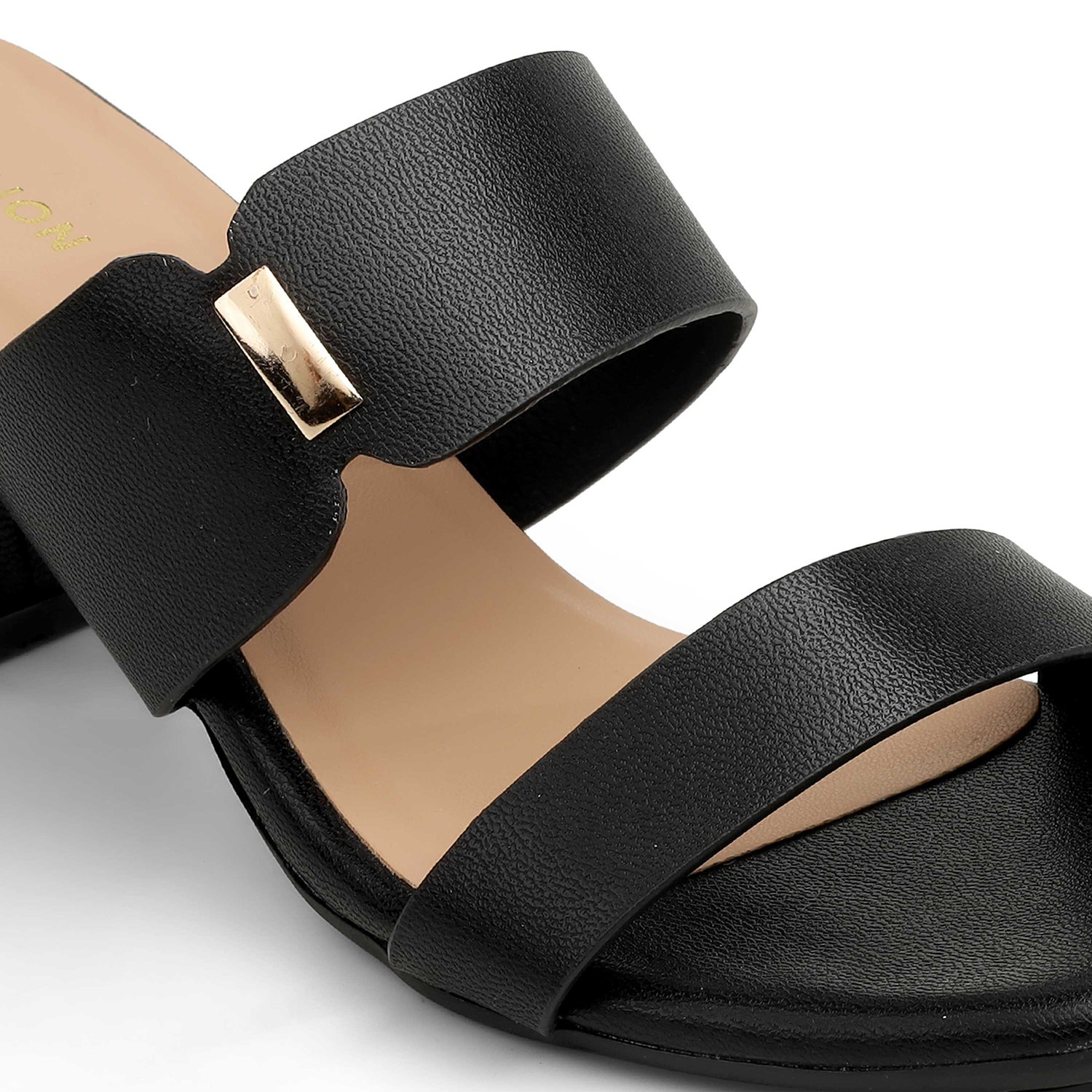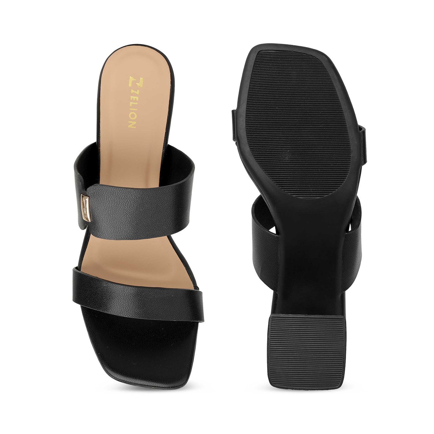 Zelion Women’s Premium Metallic Block Heel Slip-On Sandals