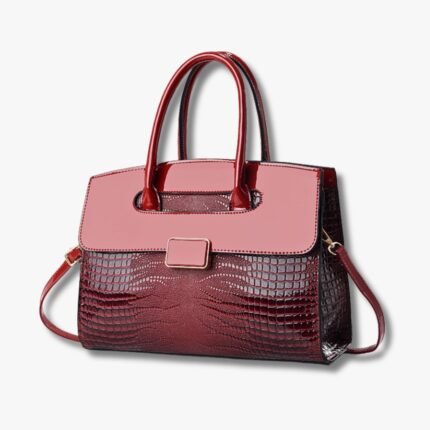 Luxury Glossy Croc-Texture PU Leather Handbag with Shoulder Strap for Women