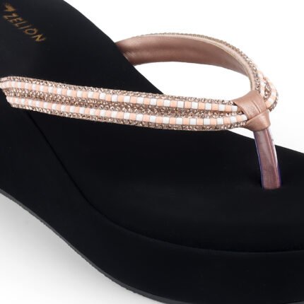 Elevate your everyday style with these stunning platform wedges by Zelion. Designed with a sleek, jet-black velvet-finish sole, these sandals